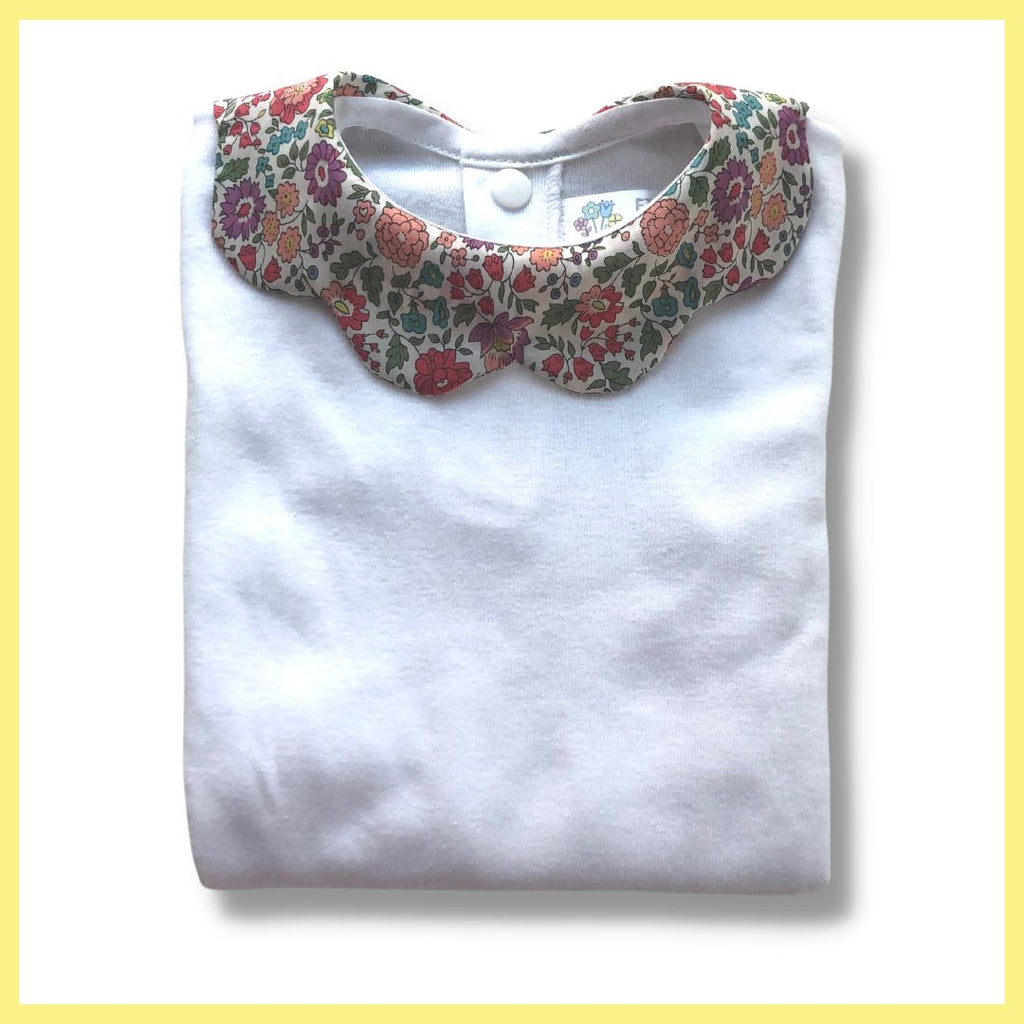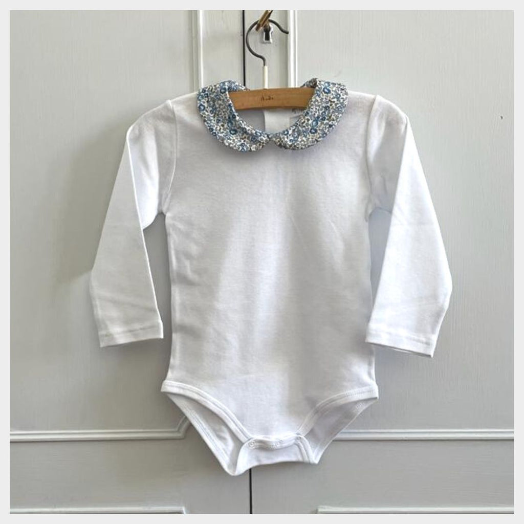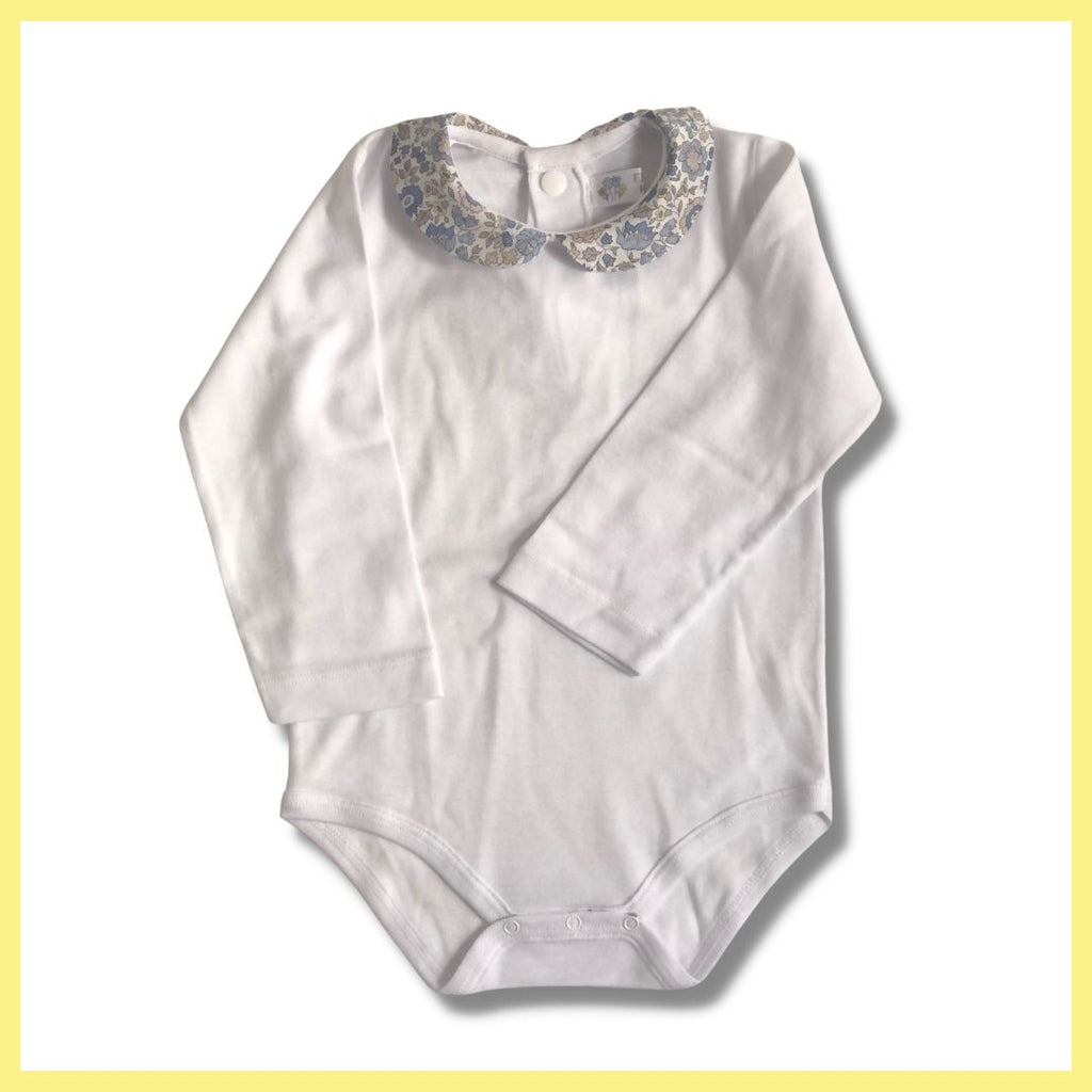 Body 100% cotone di altissima qualità cucito in Italia, rifinito a mano e colletto in Liberty Fabrics o altri cotoni a scelta.