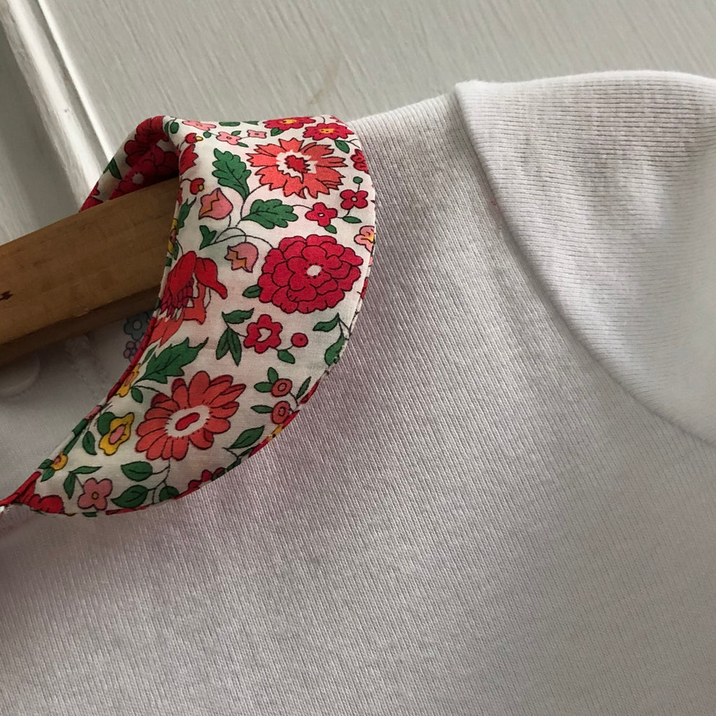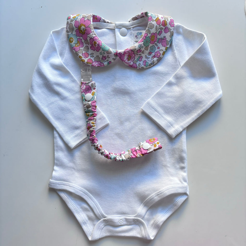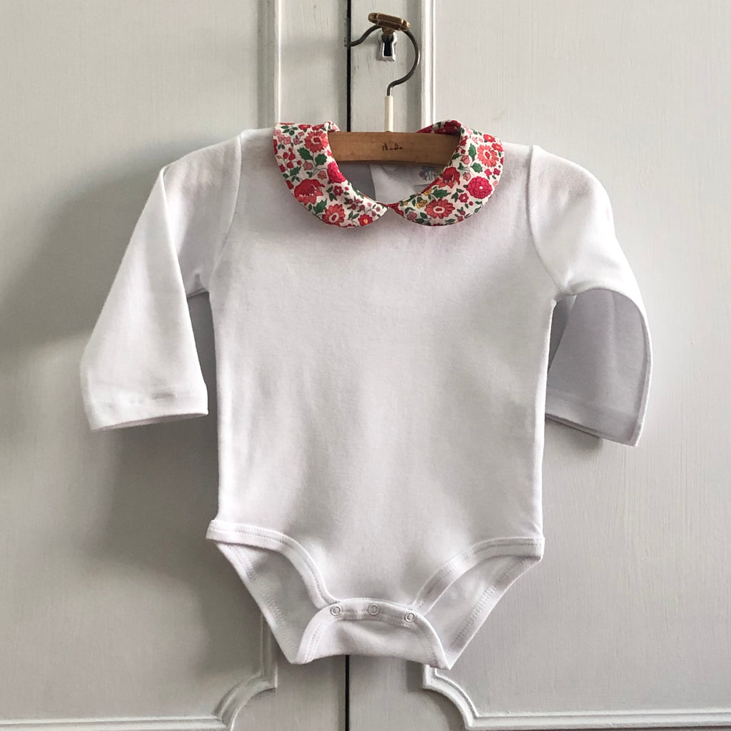 Body 100% cotone di altissima qualità cucito in Italia, rifinito a mano e colletto in Liberty Fabrics o altri cotoni a scelta.