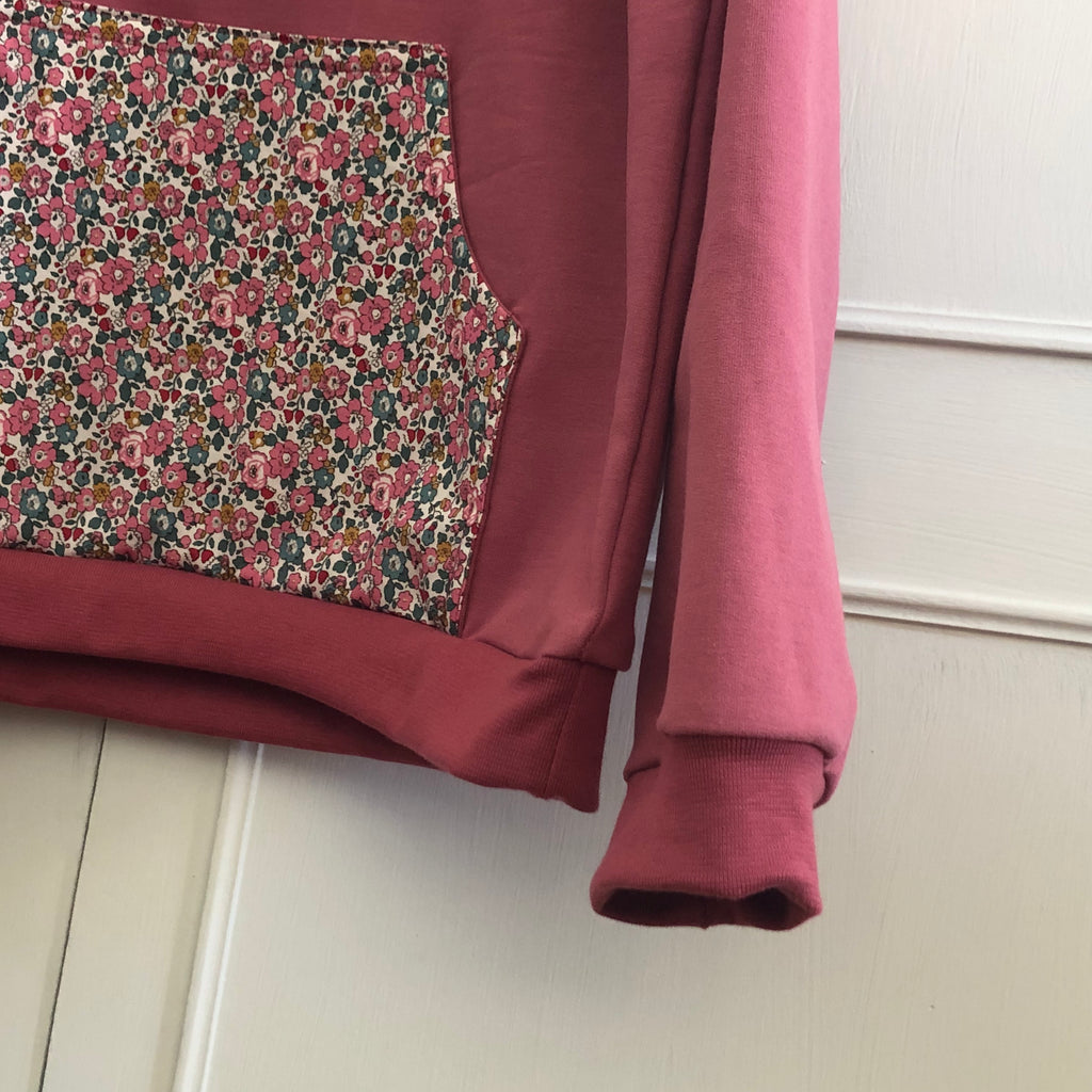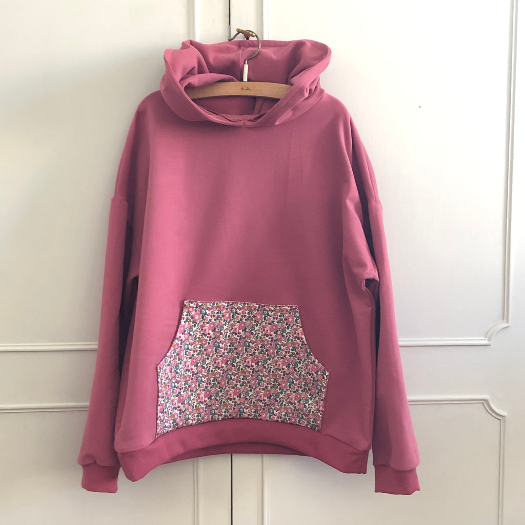 In questo modello è possibile scegliere la stoffa preferita per la tasca della felpa.